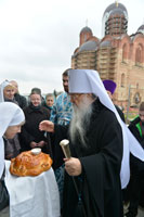 По окончании Литургии Владыка Митрополит обратился к молящимся со словом назидания, а затем поздравил настоятеля прихода протоиерея Игоря Коростелева с 25-летием служения в священном сане и 65-летием со дня рождения. В связи с этими датами и во внимание к усердным трудам во славу Церкви Божией Его Высокопреосвященство наградил отца Игоря орденом святителя Кирилла Туровского I степени. Также Митрополит Филарет удостоил клириков прихода иерея Дионисия Коростелёва и протодиакона Ярослава Близнюка права ношения камилавки и вручил труженикам прихода грамоты Патриаршего Экзарха.
