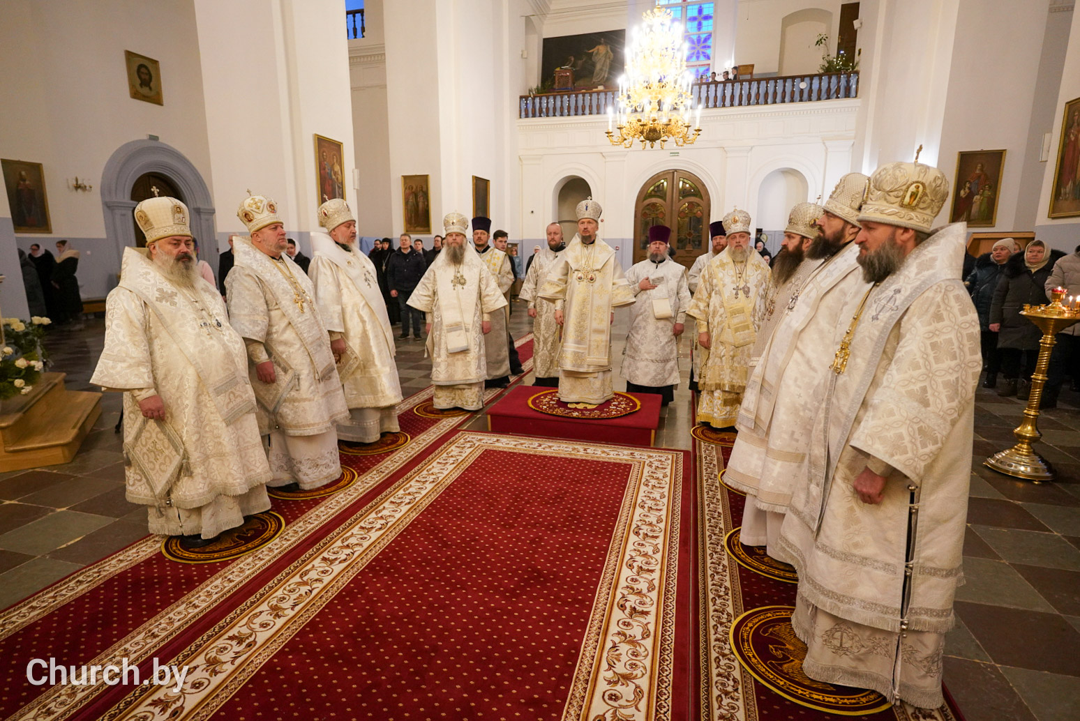 За Божественной литургией в Свято-Успенском соборе обители Его Высокопреосвященству сослужили: наместник Жировичского монастыря архиепископ Новогрудский и Слонимский Гурий, архиепископ Брестский и Кобринский Иоанн, архиепископ Гомельский и Жлобинский Стефан, архиепископ Гродненский и Волковысский Антоний, епископ Полоцкий и Глубокский Игнатий, епископ Борисовский и Марьиногорский Амвросий, епископ Пинский и Лунинецкий Георгий, викарий Витебской епархии епископ Друцкий Евсевий.