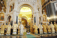 Предстоятелю Русской Православной Церкви сослужили: митрополит Санкт-Петербургский и Ладожский Владимир; Митрополит Минский и Слуцкий Филарет; митрополит Крутицкий и Коломенский Ювеналий; Митрополит Кишиневский и всея Молдавии Владимир; Митрополит Астанайский и Казахстанский Александр; митрополит Среднеазиатский Викентий; митрополит Волоколамский Иларион, председатель Отдела внешних церковных связей; Митрополит Восточно-Американский и Нью-Йоркский Иларион, Первоиерарх Русской Зарубежной Церкви; митрополит Одесский и Измаильский Агафангел; собор иерархов Московского Патриархата; митрополит Зугдидский и Цаишский Герасим (Грузинская Православная Церковь); епископ Карпасийский Нектарий (Кипрская Православная Церковь); представители Поместных Православных Церквей при Московском Патриаршем престоле митрополит Киринский Афанасий (Александрийская Православная Церковь), архиепископ Филиппопольский Нифон (Антиохийская Православная Церковь), архимандрит Стефан (Диспиракис) (Иерусалимская Православная Церковь), архимандрит Феоктист (Димитров) (Болгарская Православная Церковь), протоиерей Алексий Ющенко (Православная Церковь Чешских земель и Словакии); схиархимандрит Илий (Ноздрин); архимандрит Исидор (Минаев), начальник Русской духовной миссии в Иерусалиме; протоиерей Владимир Диваков, секретарь Патриарха Московского и всея Руси по г. Москве; протоиерей Михаил Рязанцев, ключарь Храма Христа Спасителя; протоиерей Александр Ганаба, секретарь Московского епархиального управления; протоиерей Димитрий Смирнов, председатель Синодального отдела по взаимодействию с Вооруженными силами и правоохранительными учреждениями; протоиерей Всеволод Чаплин, председатель Синодального отдела по взаимоотношениям Церкви и общества; протоиерей Николай Балашов, заместитель председателя ОВЦС; игумен Филарет (Булеков), заместитель председателя ОВЦС; иеромонах Антоний (Севрюк), настоятель ставропигиального храма в честь святой великомученицы Екатерины в Риме; наместники ставропигиальных монастырей; духовенство г. Москвы.