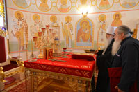 Осмотрев домовый храм Минского Епархиального управления в честь Собора Белорусских святых, делегаты поклонились хранящимся здесь святыням.