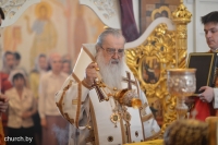 Владыке Митрополиту сослужили управляющий делами Белорусского Экзархата архимандрит Антоний (Доронин), иеромонах Закхей (Вежновец), протодиакон Владимир Назаров, протодиакон Макарий Ковалёв.